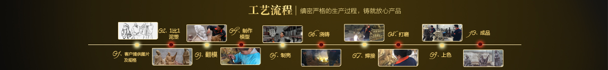 制作一件完美的鑄銅雕塑,最重要的步驟就是制作泥塑模型,然后再用工業(yè)硅膠拓印、翻模。所以泥塑的姿態(tài)、神情生動(dòng)與否直接影響最終銅雕塑的品質(zhì)。所以我廠一直對(duì)泥塑模型的制作格外重視。我廠以雕塑為本,以藝術(shù)為根,挾中華文化之傳統(tǒng),偕歐陸藝術(shù)之風(fēng)韻,風(fēng)格獨(dú)特,盡顯淋漓盡致。我們本著大膽創(chuàng)新、勇于突破的精神,以追求卓越為導(dǎo)向,堅(jiān)持寧缺勿濫為原則,并可依照您提供的要求,為您量身設(shè)計(jì)制作。我廠人才濟(jì)濟(jì),有智慧嚴(yán)謹(jǐn)?shù)墓芾戆嘧樱姸嗄贻p充滿激情、充滿創(chuàng)意的專(zhuān)業(yè)設(shè)計(jì)團(tuán)隊(duì)、有專(zhuān)業(yè)技術(shù)精湛的雕塑制作人才和專(zhuān)業(yè)的施工隊(duì)伍。他們不僅具深厚的文化藝術(shù)底蘊(yùn),更汲取當(dāng)代雕塑精華,博采眾家之長(zhǎng),作品既有嚴(yán)肅莊重寫(xiě)實(shí)題材,也有輕松前衛(wèi)的抽象題材,表現(xiàn)手法上浪漫主義中不乏樸實(shí),現(xiàn)實(shí)主義中蘊(yùn)涵著激情,設(shè)計(jì)理念貫穿古今、融匯中西,深刻詮釋著藝術(shù)的精髓,把古典主義和后現(xiàn)代主義完美的融合,將雕塑藝術(shù)演繹為力的凝聚、美的體現(xiàn),讓人們感受到的不僅是一種藝術(shù)的浪漫與優(yōu)雅、粗獷與悲壯、更是豐富的優(yōu)秀藝術(shù)寶藏和文化傳統(tǒng),讓您在藝術(shù)與文化中穿流,在時(shí)空中飄蕩,使靈魂在藝術(shù)的海洋洗禮。 MORE+